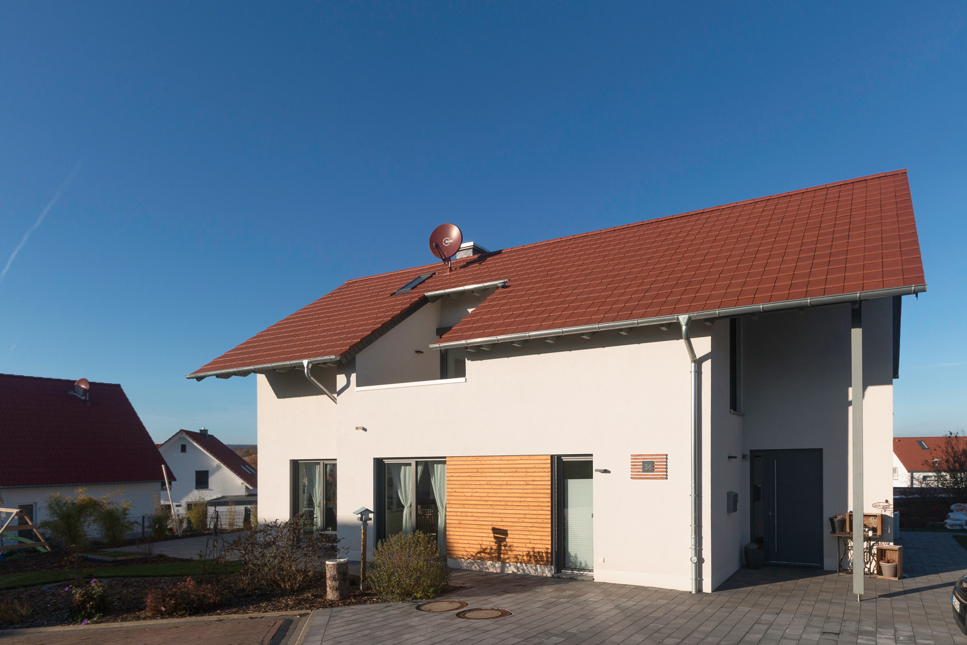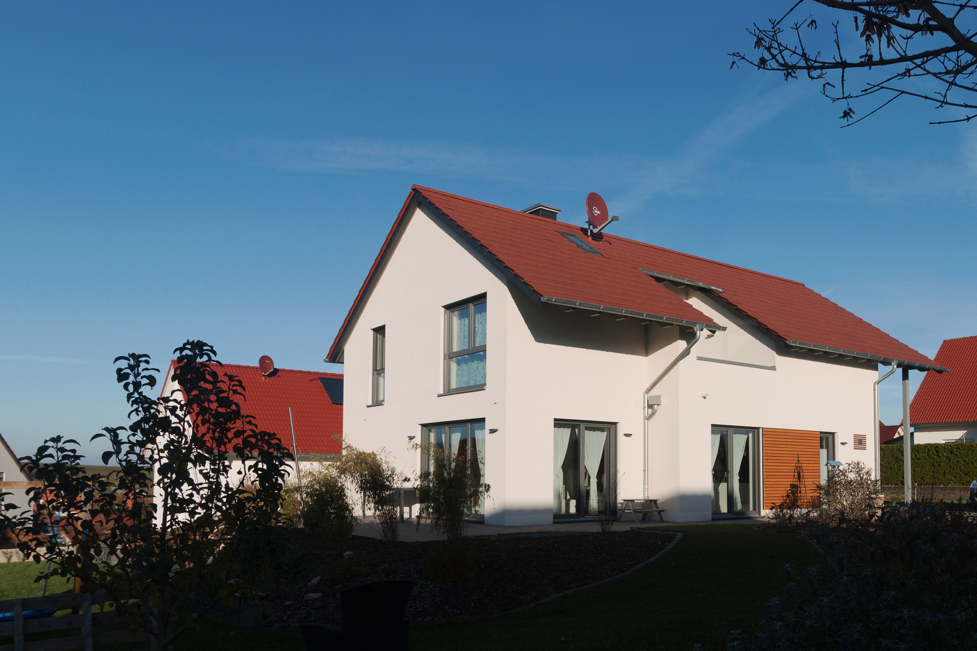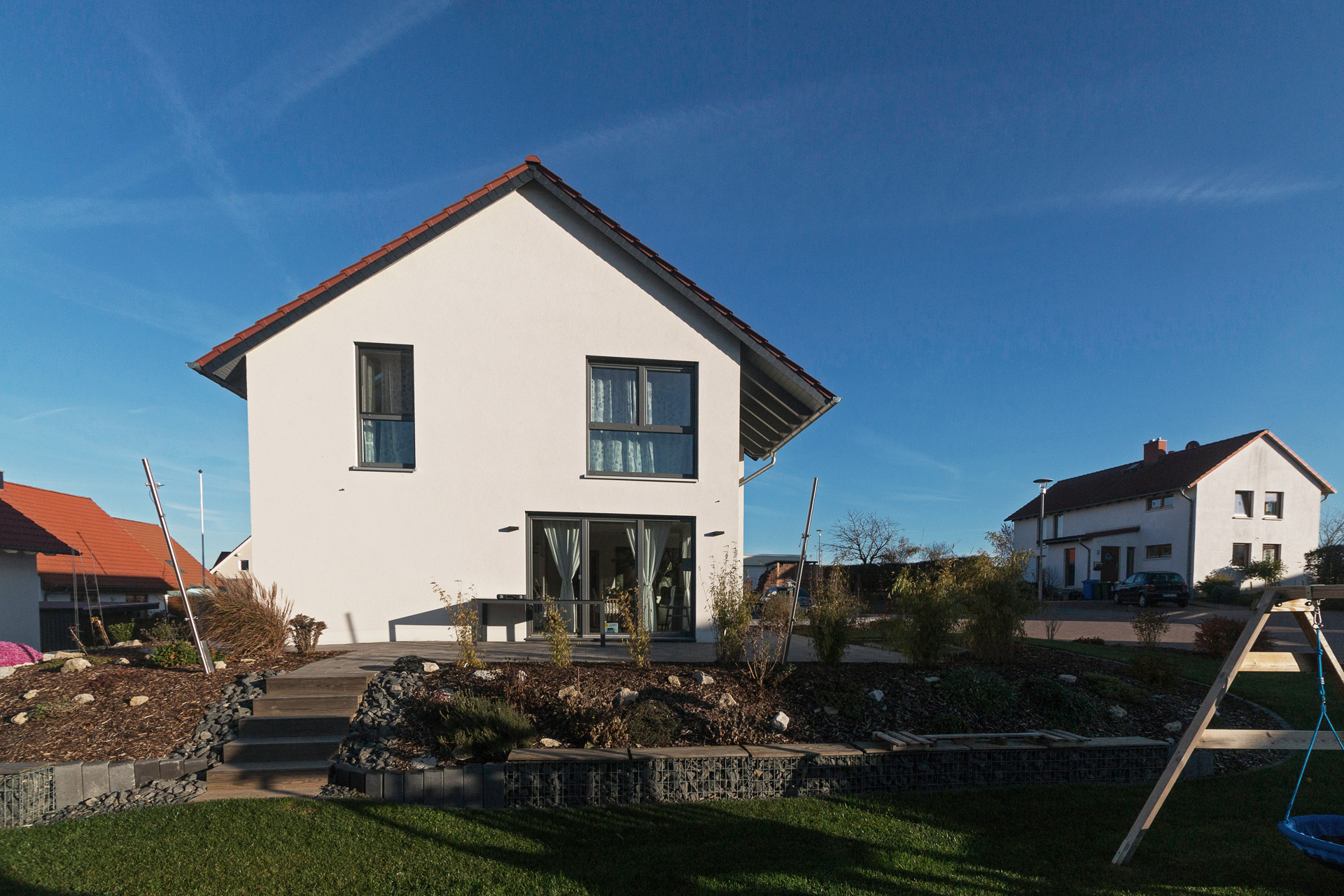 Das großzügige Grundstück bietet viel Platz und Grün für dieses neue Familiendomizil. Als Teil eines Neubaugebietes ist dieses Wohnhaus innerhalb der Vorgaben des Bebauungsplanes in Massivbauweise errichtet. Das Erdgeschoss eröffnet den Blick auf den großen Garten, der Kamin verbreitet Wohligkeit im Wohnraum. Technisch innovativ sorgt die Wärmepumpe mit Kühlfunktion für den Temperatur-Ausgleich im Haus. Die Echtholztreppe mit dem auf attraktive Weise unterleuchteten Handgriff führt in das Obergeschoss, dessen Flur von den Fenstern der Loggia beleuchtet wird. Das obere Geschoss überzeugt durch seine Helligkeit und intelligente Raumnutzung. Als gelungener Abschluss ermöglicht die Loggia (wind-)geschützte Erholung im Freien, die umgebenden Hügel stets im Blick.